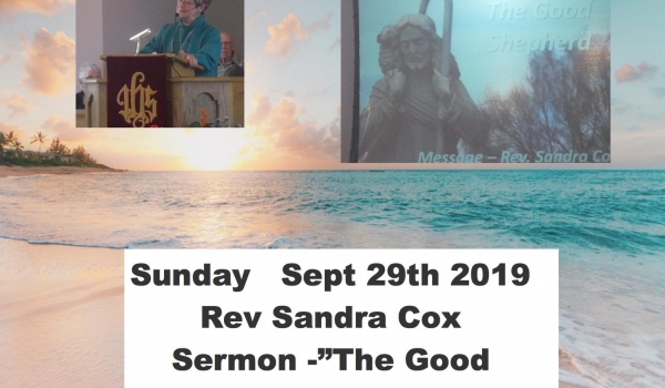 Rev Sandra's sermon. " The Good Shepherd". begins at minute 43. 51