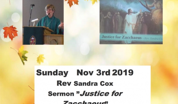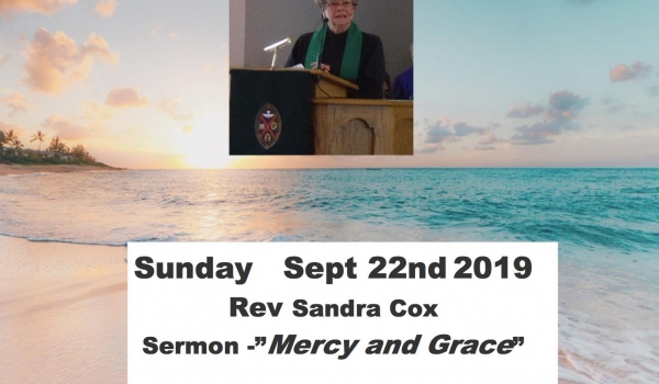 Rev Sandra Cox's sermon " Mercy and Grace". begins at minute 39.15