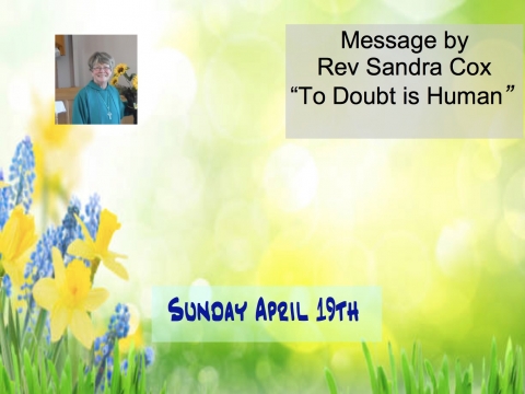 Rev Sandra's message "To Doubt is Human" begins at minute 15.19