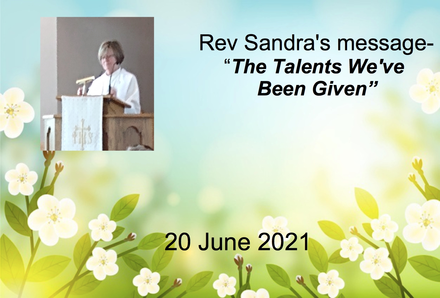 Rev Sandra's message.  - "The Talents We've Been Given" begins at minnute 38.09