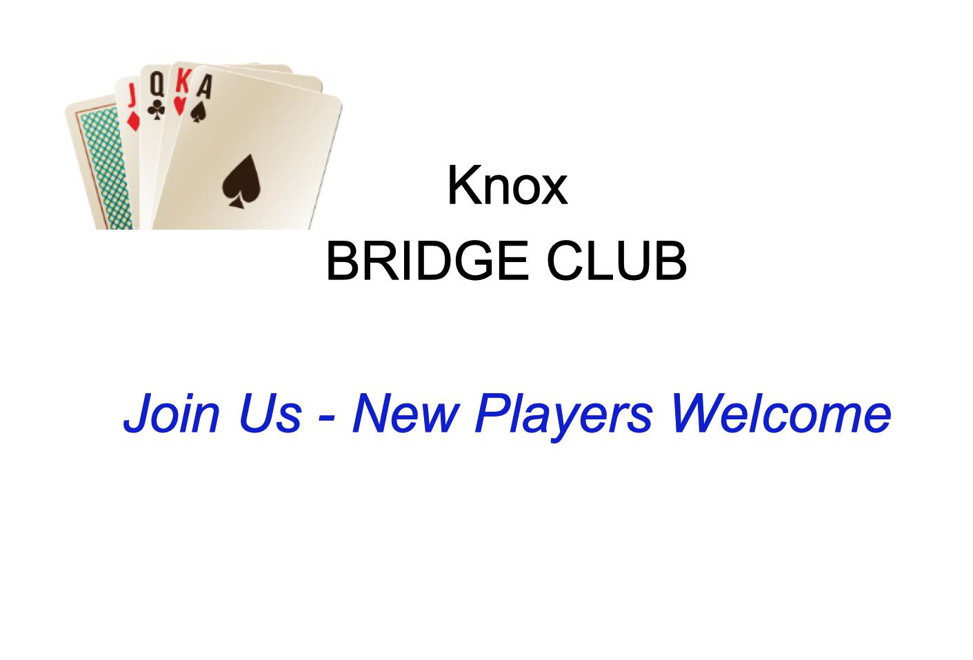 Knox Bridge Club will be starting soon!
