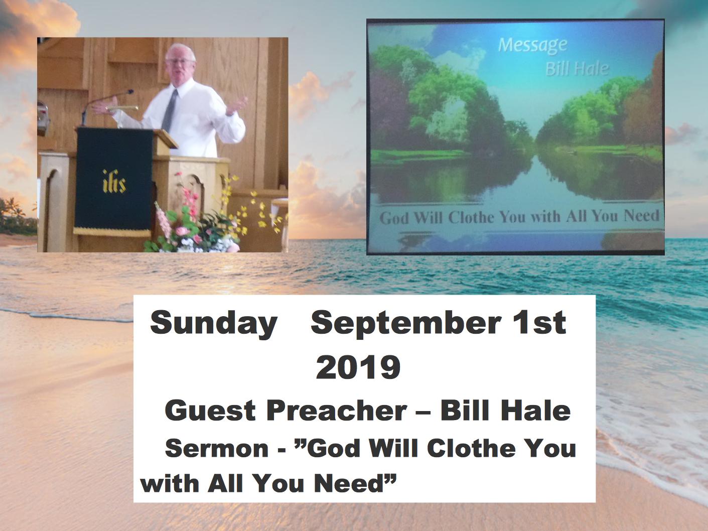 Guest Preacher Bill Hale....Bill message "God Will Clothe You with All You Need" begins @ minute 34.57