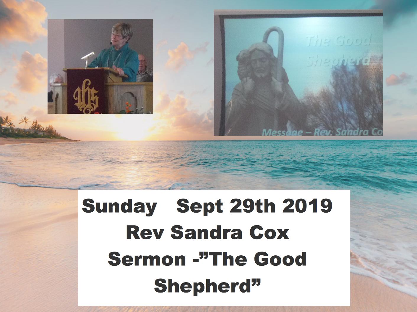 Rev Sandra's sermon. " The Good Shepherd". begins at minuteĀ 43. 51